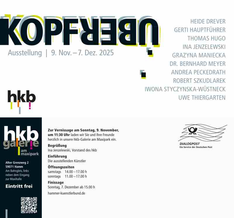-> -> 2025.11.09 11:30 am Exhibition opening “KOPFÜBER” in the gallery of the hkb (Alter Grenzweg 2, 59071 Hamm) until 7.12.2025